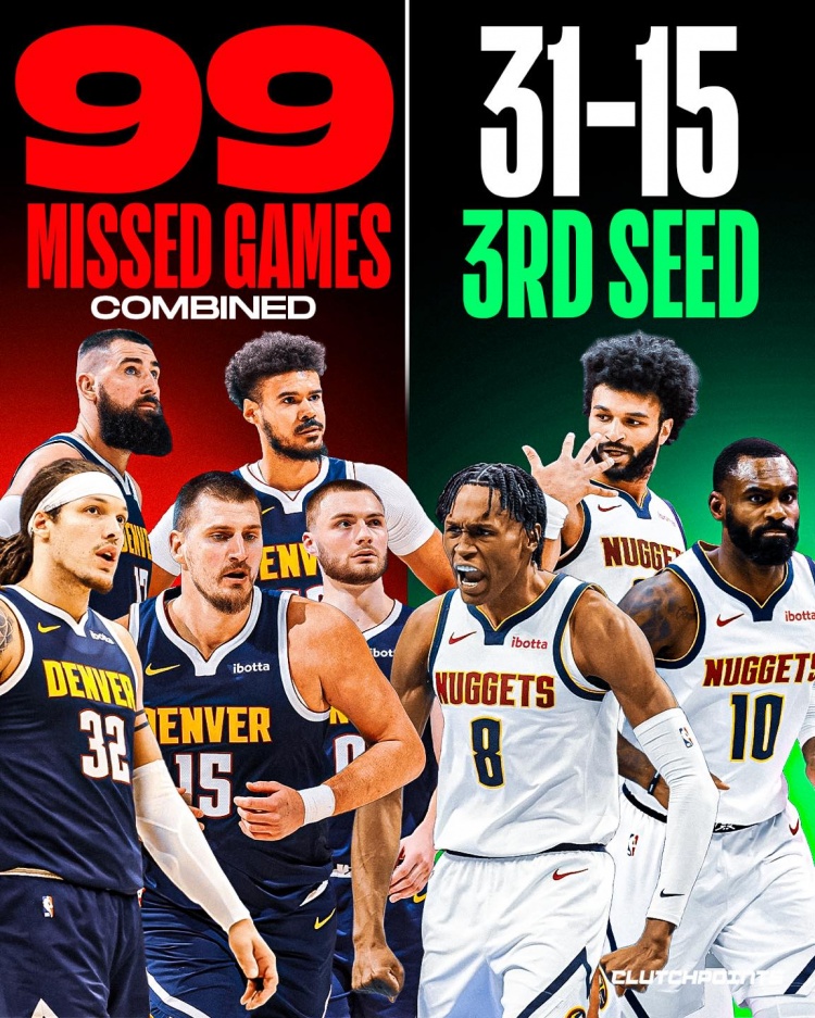 博鱼体育-4主力+瓦兰合计缺席99场!掘金依旧31胜15负排西部第三!