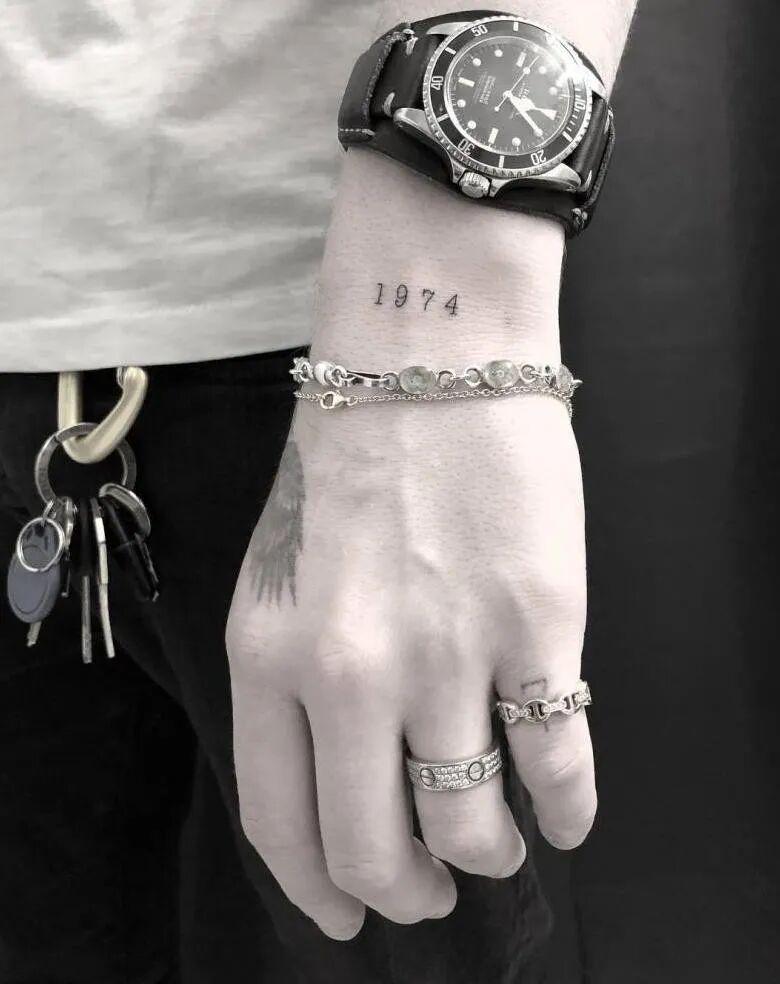 比如,右手拇指的1975,是贝克汉姆的出生年份。
