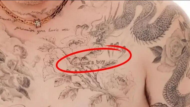 献给母亲维多利亚的也挺多,左胸有个“mama's boy”,妈宝男