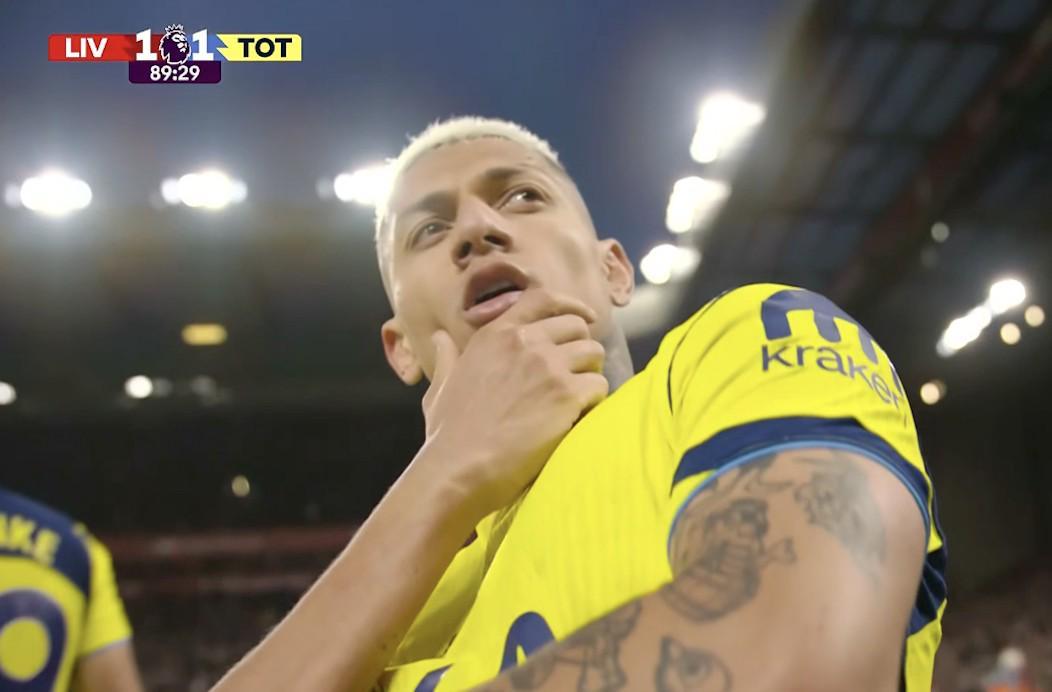 此役客场对阵利物浦,首发出战的里沙利松在比赛第90分钟破门,帮助热刺将比分扳为1-1。